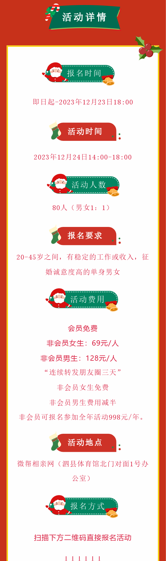 叮咚!圣诞老人来给你送礼物啦~“圣”情礼待 ,“诞”愿是你,圣诞主题Party正在招募中,感兴趣的小伙伴快来找我报名吧~